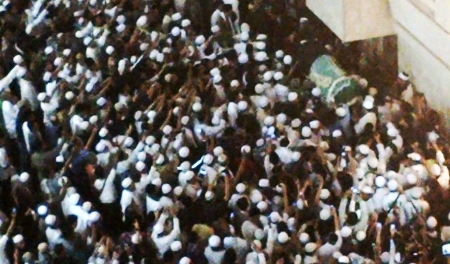 bahkan, saat jenazah ditandu ke depan mimbar, ribuan jamaah tampak ingin mendapatkan fotonya.