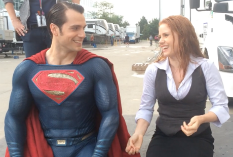 tak sendirian, henry juga ditemani oleh lawan mainnya dalam film 'batman vs superman: dawn of justice', amy adams.