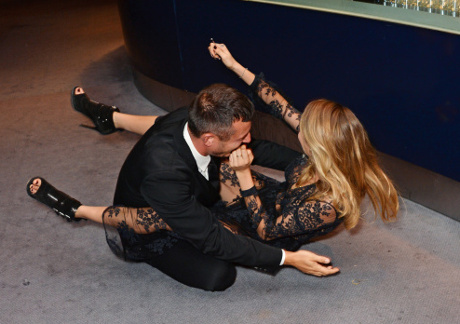 menghadiri gq men of the year awards 2014, model asal london tersebut harus menahan malu.